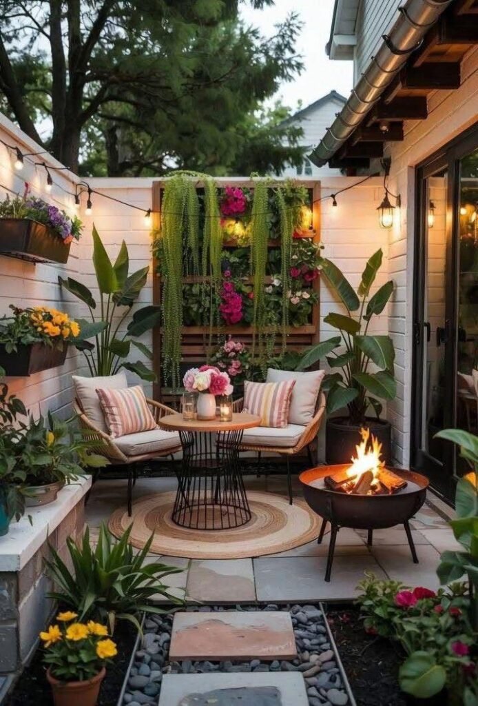 A vertical garden instantly draws the eye and gives your space charm. Add fairy lights, colorful pots, or trailing vines for extra flair. It’s an easy way to bring nature to walls, fences, or corners that usually go unnoticed. Rotate plants with the seasons to keep your garden feeling fresh and full of character year-round.