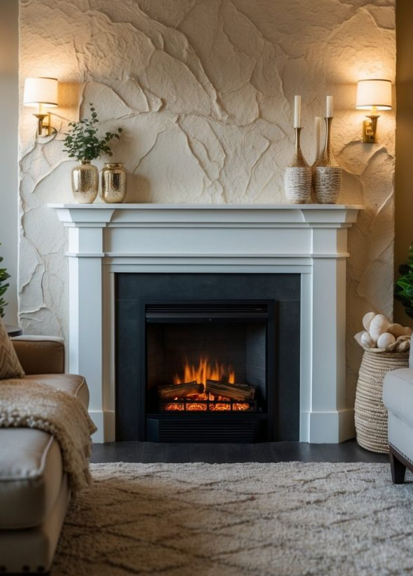 Give your walls or fireplace a textured look with a plaster and stucco finish. This DIY method is affordable, versatile, and works well in rustic, Mediterranean, or modern interiors. The finish adds depth, character, and charm while keeping costs low compared to stone or brick.