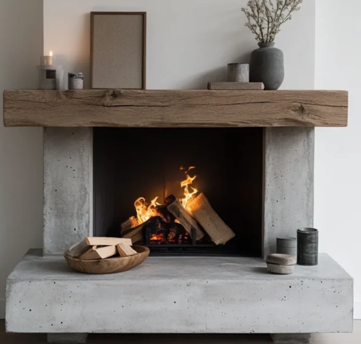 Create a sleek, modern vibe with a minimalist concrete look. This DIY style works beautifully for fireplaces, accent walls, or tabletops, offering texture and clean lines without expensive materials. Neutral gray tones pair well with wood, metal, or glass, making it easy to fit into rustic, industrial, or contemporary spaces.