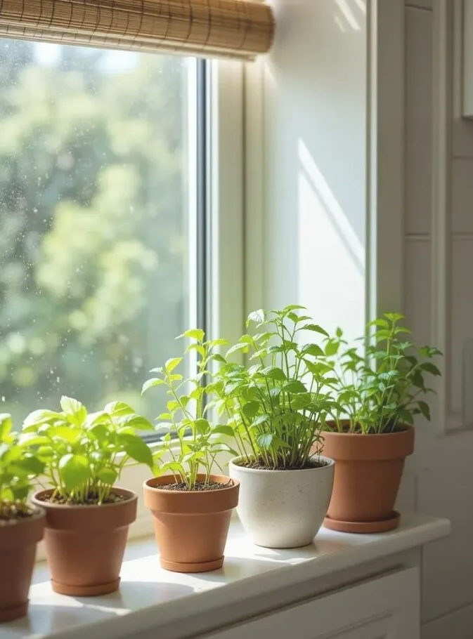 Herbs such as basil, rosemary, or mint not only enrich the visual atmosphere but also offer practical convenience for everyday cooking. Their presence bridges form and purpose, making the kitchen feel alive, aromatic, and thoughtfully balanced.