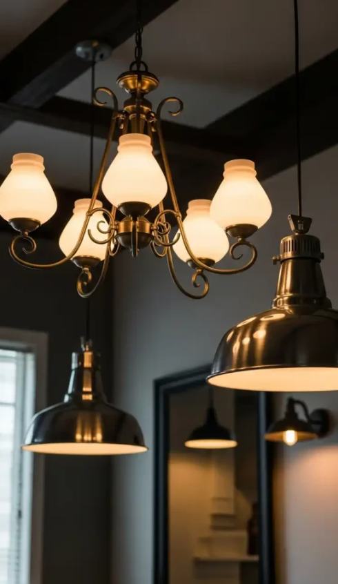 Consider mixing finishes—brass, iron, or copper—for depth and contrast. Layer your lighting with wall sconces or candle-inspired bulbs to create a soft, ambient glow perfect for any occasion.