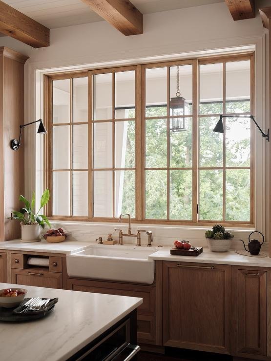 Opt for wide casement or double-hung windows to capture abundant daylight. Position them near prep areas or above the sink for maximum effect. Their warm tones complement neutral cabinetry and natural materials, turning everyday light into a design feature that enhances the kitchen’s welcoming spirit.