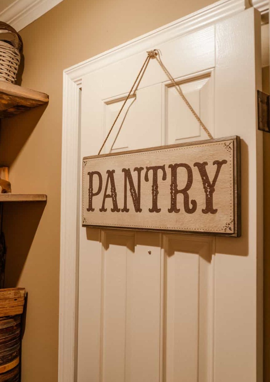 Select a sign that matches your kitchen’s overall tone—wooden plaques for a country vibe, metal lettering for a slightly industrial edge, or soft vinyl decals for a clean finish. The right choice ties the space together and keeps the pantry entry looking intentional and inviting.