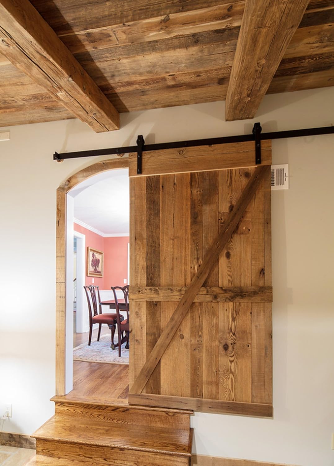 This pantry door highlights the gritty charm of reclaimed lumber, paired with a sliding track that brings smooth motion and practical appeal. Its worn surface adds depth and character without drifting into overly polished territory, making it a strong choice for anyone shaping a warm farmhouse setting.