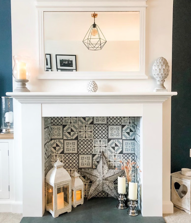 Candles allow for flexibility—you can mix sizes, shapes, and holders to match your décor. From classic white pillars to lanterns, glass votives, or flameless LED options, the effect is warm and inviting without the upkeep of a traditional fire. This approach works especially well for anyone looking to add charm while keeping maintenance simple.