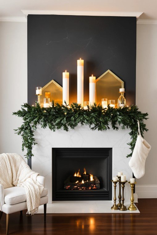 Place a small lamp at one end of the mantle for a subtle glow. Fairy lights can be woven through garlands or greenery. The gentle light adds warmth and comfort to the room.