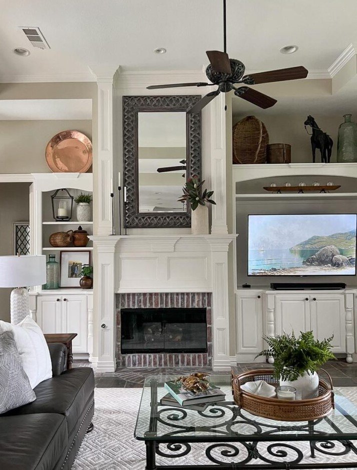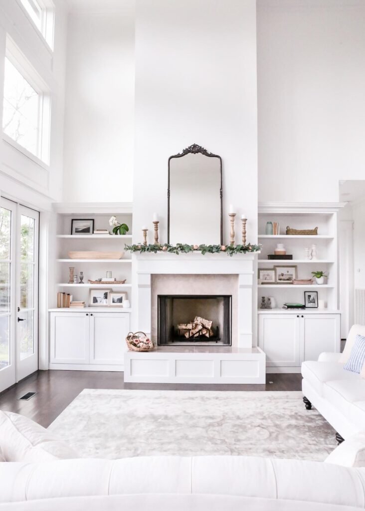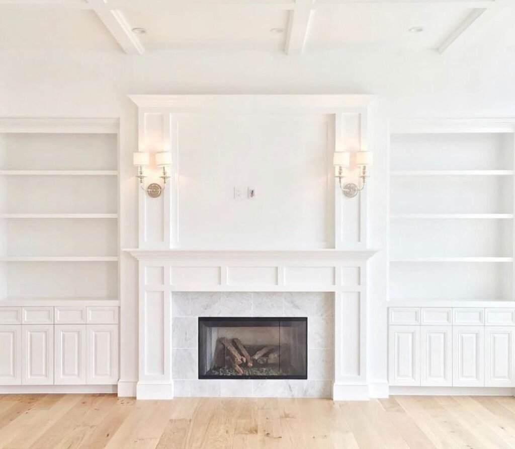 Bring balance and charm to your home with fireplace moldings and built-ins on each side. The detailed trim adds depth, while built-ins create space for books, art, and décor. This design adds structure and grace, making your fireplace the centerpiece of the room.