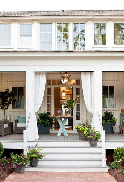 Add movement and soft contrast with curtains that frame your patio without closing it in. From sheer panels that drift with the breeze to heavier fabrics that offer a bit more shade, this look brings easy comfort and a touch of airiness. A simple shift that makes the space feel lighter and more lived-in.