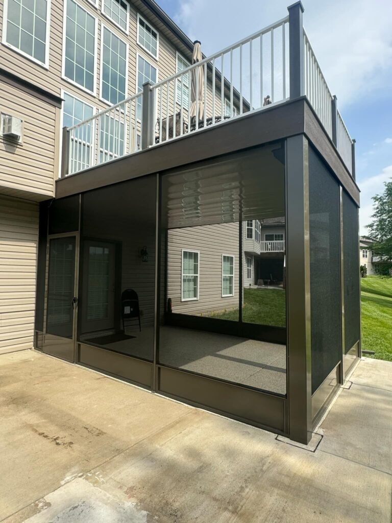 Glass panels, clean lines, and refined finishes define this enclosed patio concept. Ideal for year-round comfort, it blends utility with visual clarity. Add modular furniture, low-profile lighting, and subtle greenery for a space that feels both intentional and unfussy.