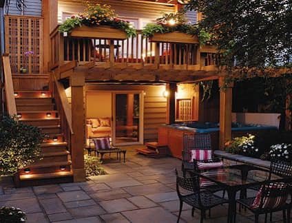 A simple strand of lights can shift the whole mood. Drape them overhead or weave through railings to add warmth and dimension. Pair with mixed textures—think weathered wood and soft cushions—for a space that feels inviting long after sunset.
