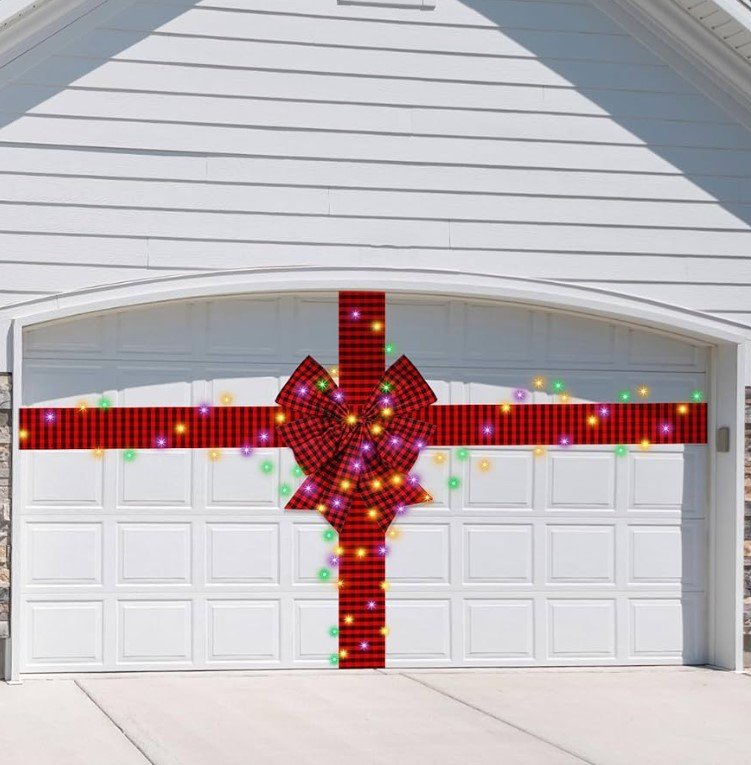 A garage door can become the biggest Christmas gift on the block. All it takes is a large red ribbon and a giant bow. Use magnetic ribbons made for cars and doors so they stick easily without damage. Red looks classic, but gold or silver adds a modern touch.