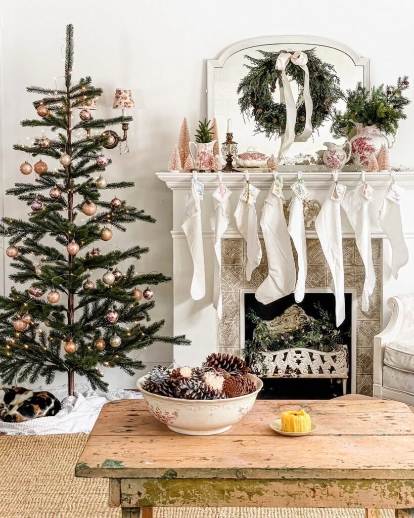 Rustic decorations blend beautifully with natural greens and warm white lights. Add burlap ribbons or simple plaid bows to tie the look together. The result feels cozy, traditional, and full of heart.