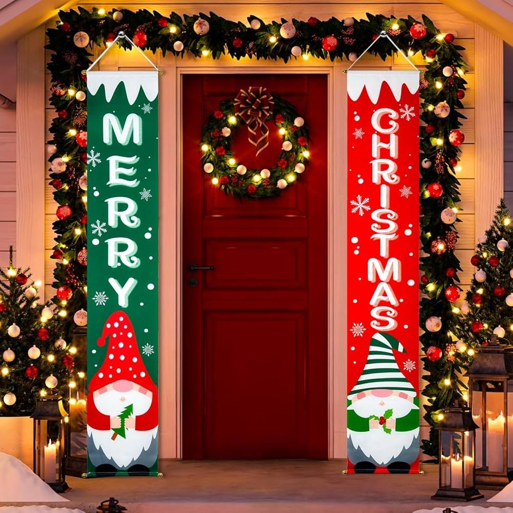 Weather-resistant fabric banners last longer outdoors. Red, green, and white colors match the season perfectly. Add fairy lights around the banner for a sparkling finish. The message spreads cheer to everyone passing by.