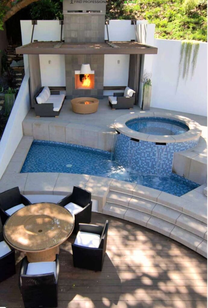 Combining a small pool with a spa brings comfort and function together. The pool can have one section for swimming and another with heated water and bubbles. It saves space and gives two experiences in one.