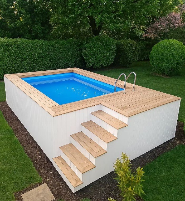 Use the deck to place chairs, plants, or even a small table. The raised height of the pool also gives privacy. Paint the exterior of the pool to match your home’s color or keep it natural with wood panels. It’s simple, neat, and family-friendly.