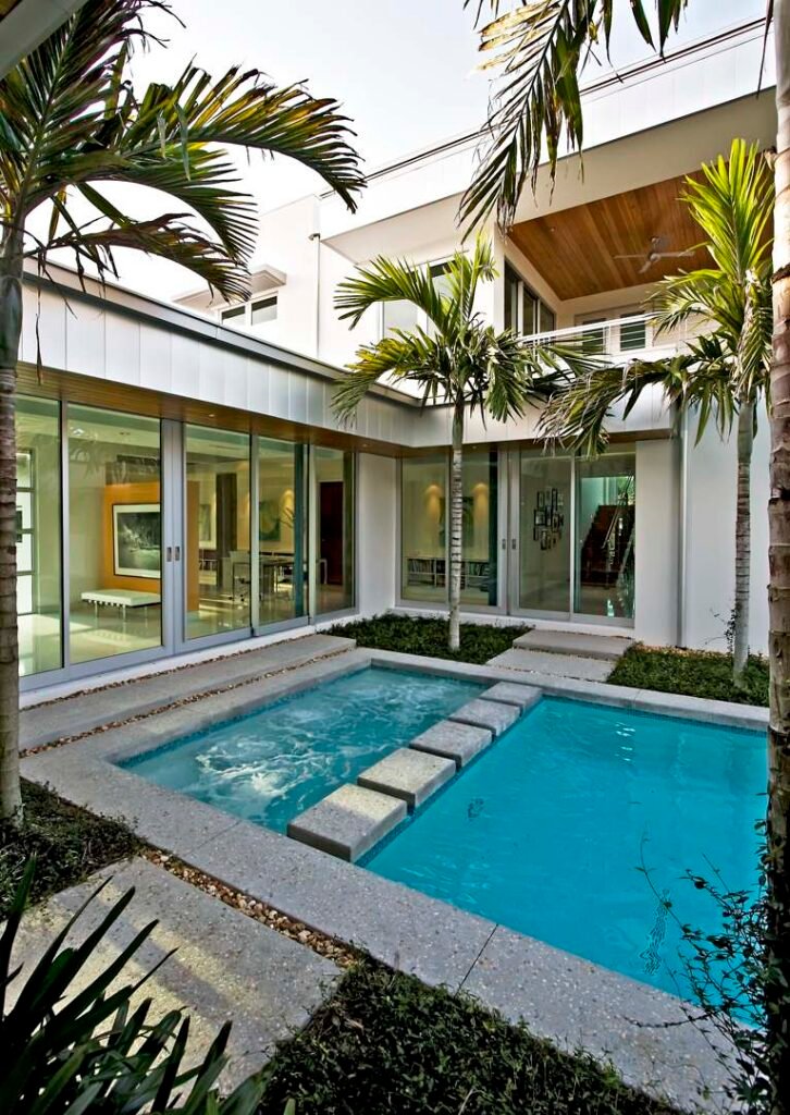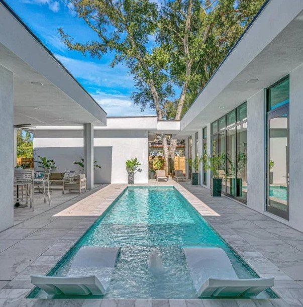 A courtyard pool adds freshness and charm to a home’s inner space. It can be built right in the middle of the house or between two walls. The private setup gives a calm and relaxing feel, away from outside noise.