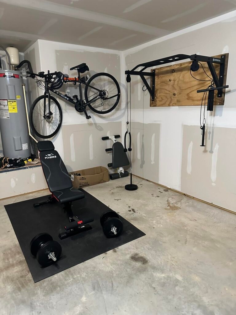 Clear out clutter and free up space to prepare your half garage gym. A clean, open area helps visualize your layout, keeps workouts efficient, and gives your fitness setup a refreshed foundation. Start by removing distractions and making room to move freely.