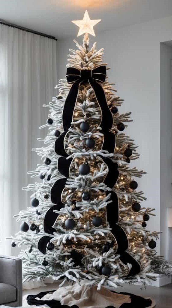 The final details shift the entire mood of your Christmas tree. A ribbon topper naturally pulls the eye upward, and smart ornament placement keeps everything balanced without feeling chaotic.