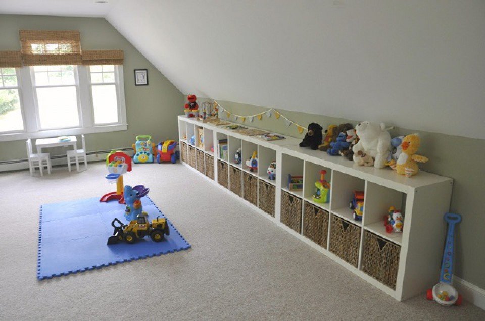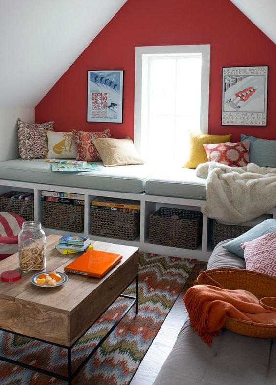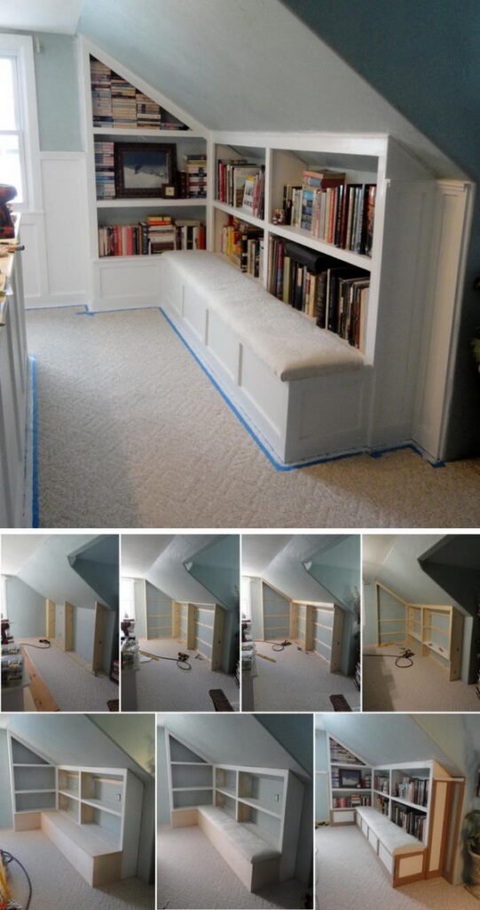 Build a wall library in the attic to neatly store and display your child’s books. A smart way to organize reading materials while turning unused wall space into a colorful and inviting corner for kids to enjoy.