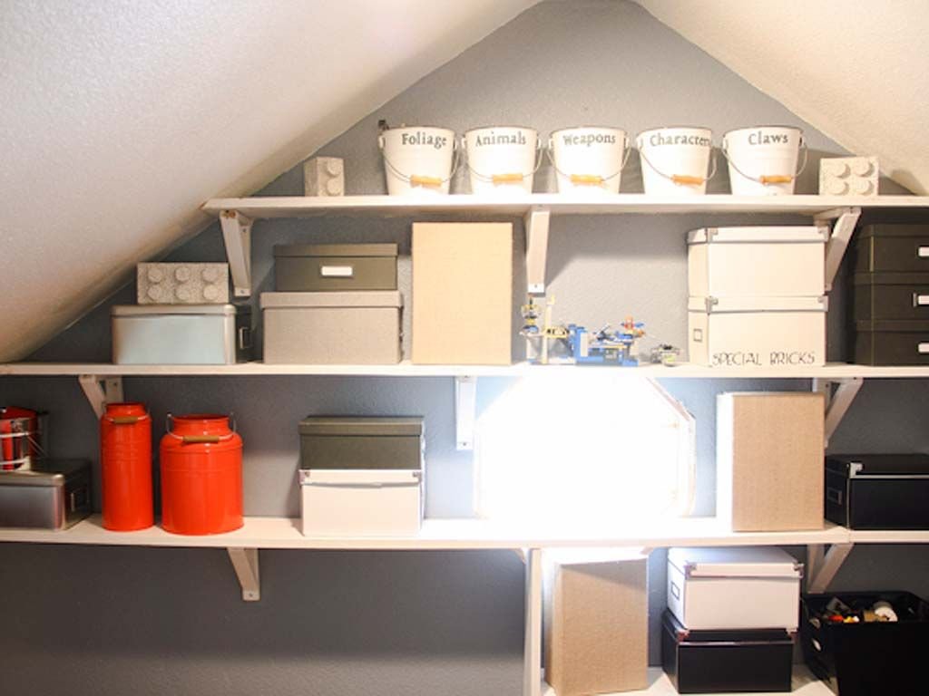 Transform your attic into a practical space by adding storage shelves along sloping walls. Ideal for books, baskets, or décor, these shelves maximize every inch of angled areas while keeping the room organized and inviting. A smart solution for turning unused attic corners into storage.