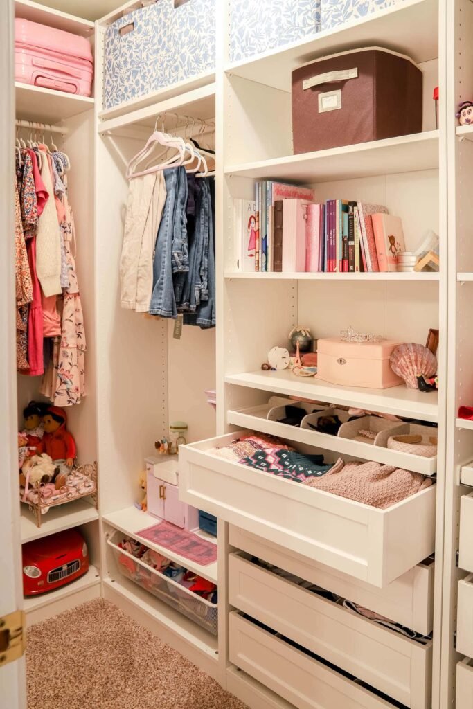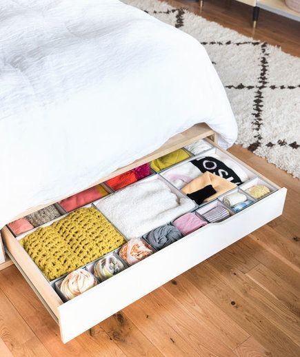 If you already have a regular bed, use the MALM under-bed storage boxes. They fit neatly under most frames. Add labels or fabric liners to keep items sorted.