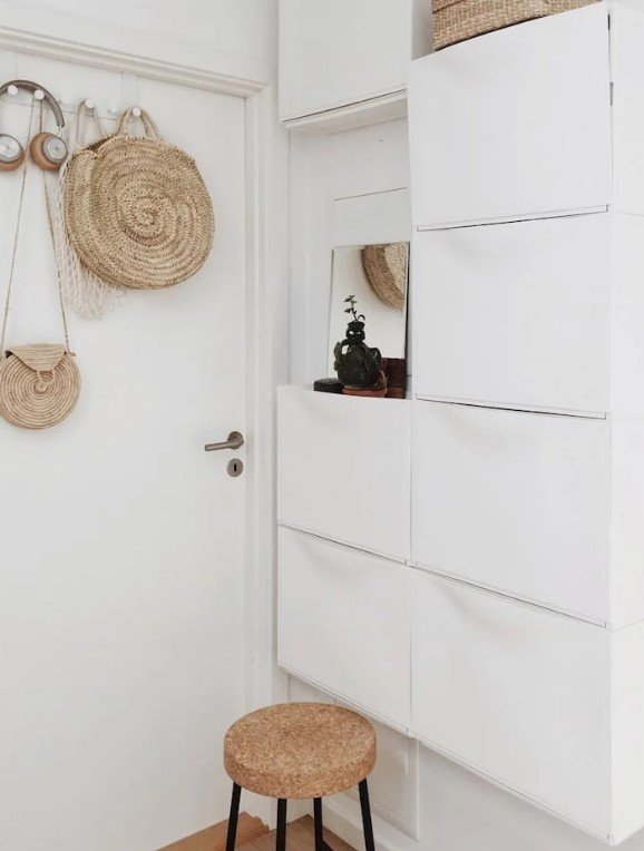 Besides shoes, the drawers can hold scarves, umbrellas, or small bags.