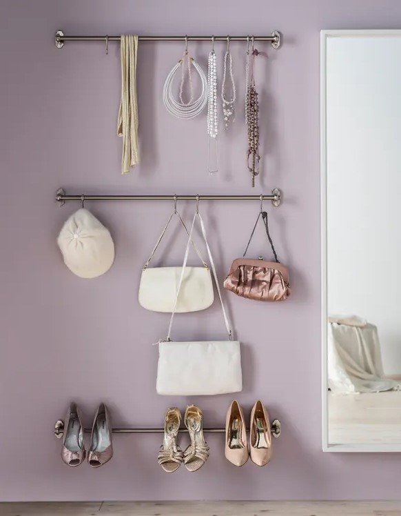 Mount one above the stove for spatulas and ladles. Hang mugs and cutting boards. In the bathroom, use it for towels, brushes, and toiletries.
