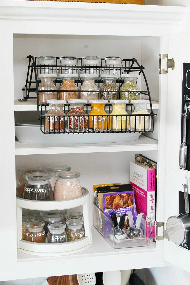 A messy spice cabinet wastes time while cooking. A dedicated spice station solves that issue.
