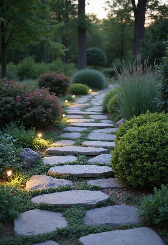 Garden pathways bring character and structure to outdoor spaces. Using natural stones, mulch, or gravel, you can create winding trails that connect seating areas, garden beds, and open zones. These paths serve as both a guide and a visual divider, helping the layout feel more purposeful. Adding soft lighting along the borders gives your yard a gentle evening glow, while accents like flowers or decorative stones introduce extra charm. A thoughtfully placed pathway doesn’t just lead the way—it weaves your landscape into a cohesive, inviting whole.