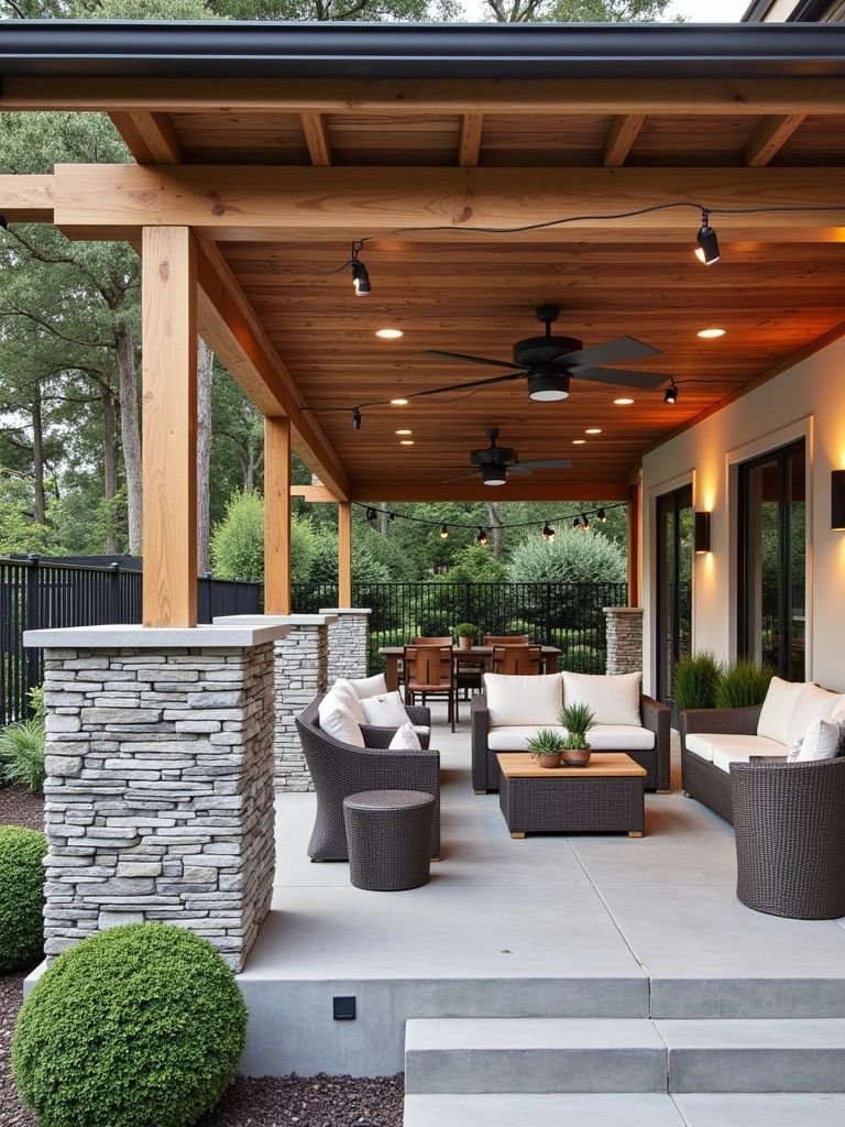 Comfortable seating, a coffee table, and accents such as throw pillows or rugs add warmth and personality. For cooler nights, outdoor heating features—like a fireplace or heat lamps—make the space inviting year-round. This type of setup transforms your yard into an extension of your home, ready for both relaxation and gatherings.
