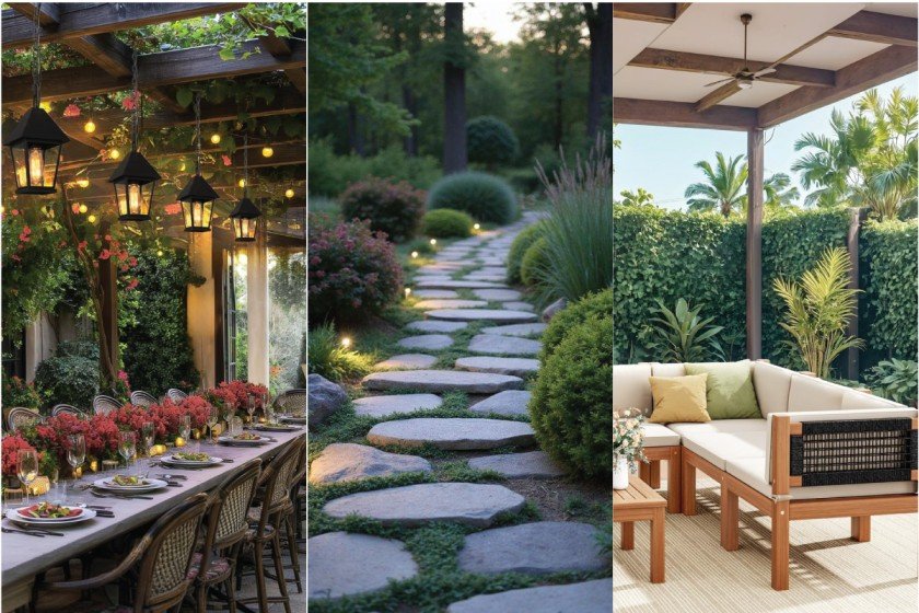 Garden pathways bring character and structure to outdoor spaces. Using natural stones, mulch, or gravel, you can create winding trails that connect seating areas, garden beds, and open zones. These paths serve as both a guide and a visual divider, helping the layout feel more purposeful. Adding soft lighting along the borders gives your yard a gentle evening glow, while accents like flowers or decorative stones introduce extra charm. A thoughtfully placed pathway doesn’t just lead the way—it weaves your landscape into a cohesive, inviting whole.