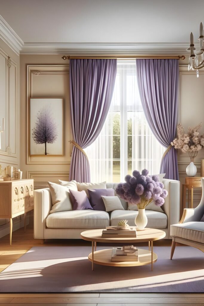 Lavender curtains bring a soft, graceful touch to cream walls, introducing a calming mix of warmth and coolness. This pairing creates an inviting atmosphere that feels airy and stylish, perfect for bedrooms, living rooms, or reading corners. The gentle shade adds personality while keeping the space light and balanced.