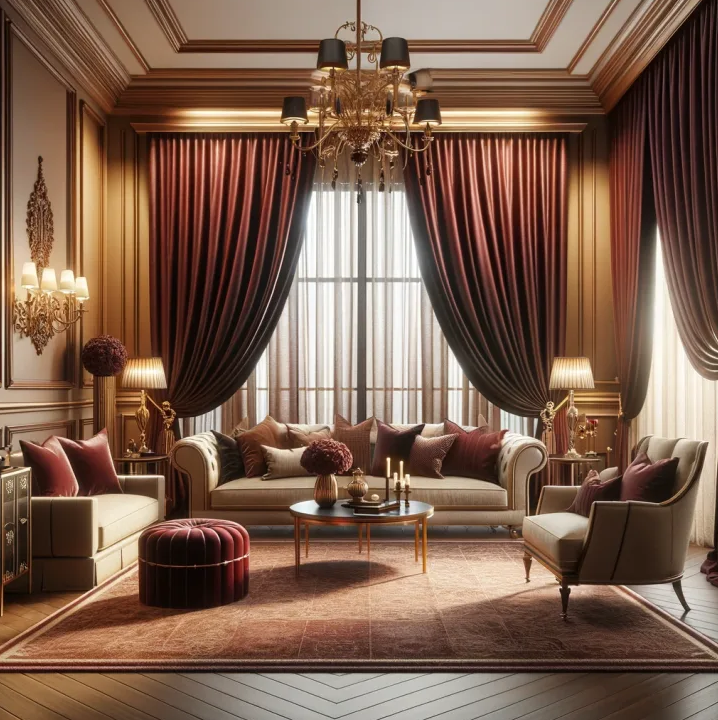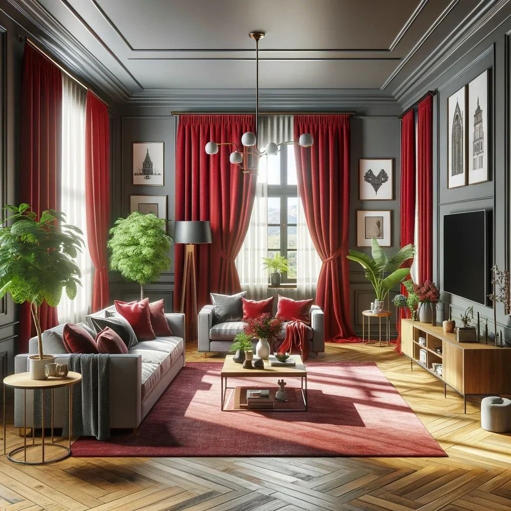 Crimson red curtains create a striking contrast with cream walls, adding passion and drama to your living space. This pairing instantly elevates the room, making it feel bold yet elegant. The deep red draws attention while the soft cream balances it out, resulting in a space that feels both lively and sophisticated.