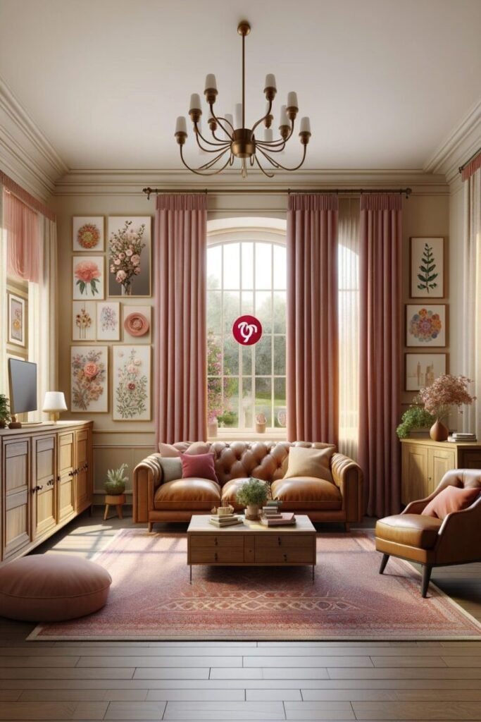 Dusty rose curtains bring warmth and softness to cream walls, adding a gentle touch of color that feels romantic yet refined. This pairing introduces personality without overpowering the neutral backdrop, making it a versatile choice for living rooms, bedrooms, or cozy reading nooks.