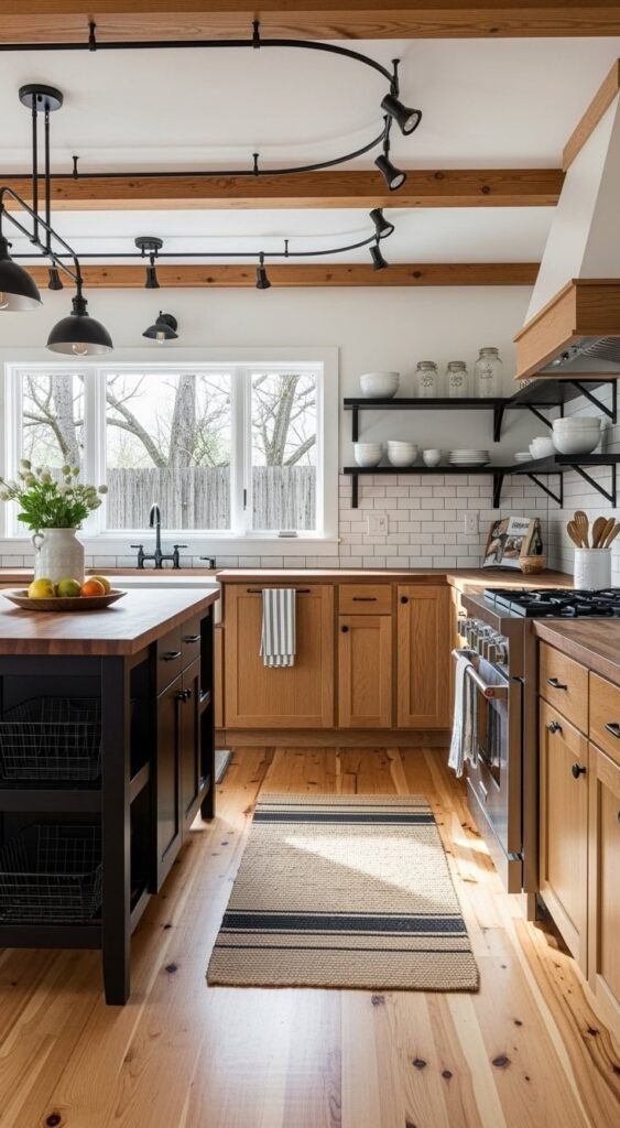 Black metal paired with warm wood has entered its main-character phase—think vintage band tee meets cashmere cardigan. This mix gives farmhouse design a bold edge without losing its welcoming touch. It’s that elevated contrast your Pinterest feed dreams about—modern, grounded, and quietly confident.
