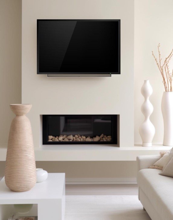 Materials like stone, slate, or tile can add depth and pattern. Keep the lines straight and the colors neutral for a modern vibe. Mount a simple mantel or leave it bare for a clean, architectural feel. It turns a blank wall into a dramatic feature.