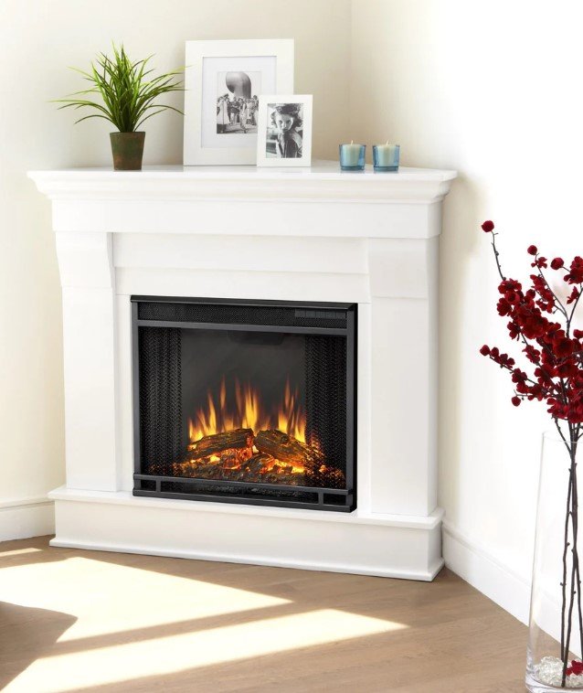A corner fireplace maximizes space and adds visual balance. It fits neatly into unused corners, making small rooms feel cozy and well-designed.