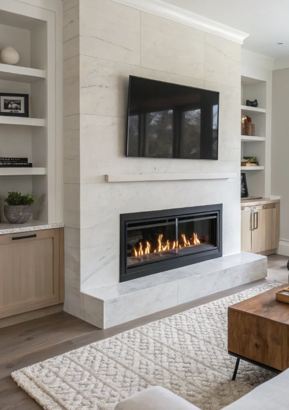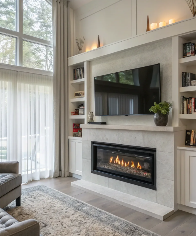 The right surface can completely change your fireplace’s presence—stone brings organic charm, while sleek tiles or panels introduce subtle geometry and polish. The goal is balance: dimension without distraction.