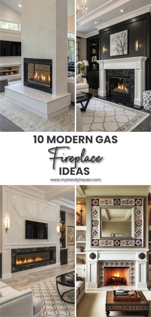 From linear wall-mounted units with crisp geometry to see-through models dividing open spaces, modern gas fireplaces bring both warmth and statement-level impact. Pair them with stone, concrete, or metal surrounds for that architectural punch, or soften the look with warm wood tones and layered textures.