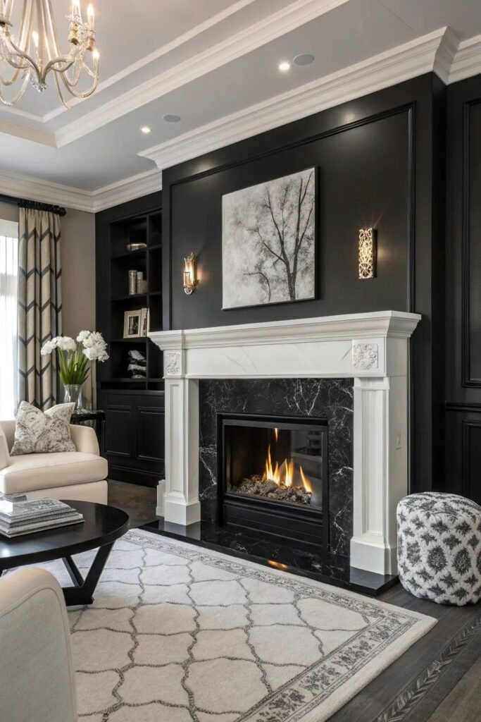 - Black and White Abstract Wall Art: Introduce contrast and rhythm with abstract pieces that echo your fireplace’s sleek geometry.