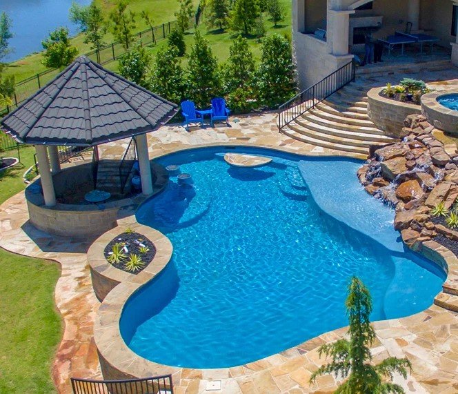 Extra features may include swim-up bars, shallow tanning areas, or waterfalls. Lagoon pools are more about relaxation than exercise.