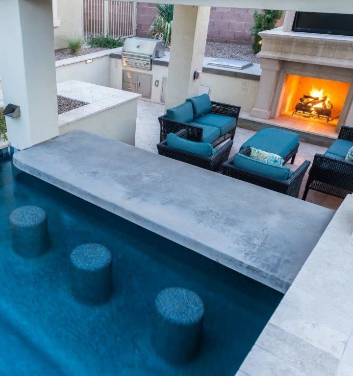 - Shallow ledges for lounging in the water.
