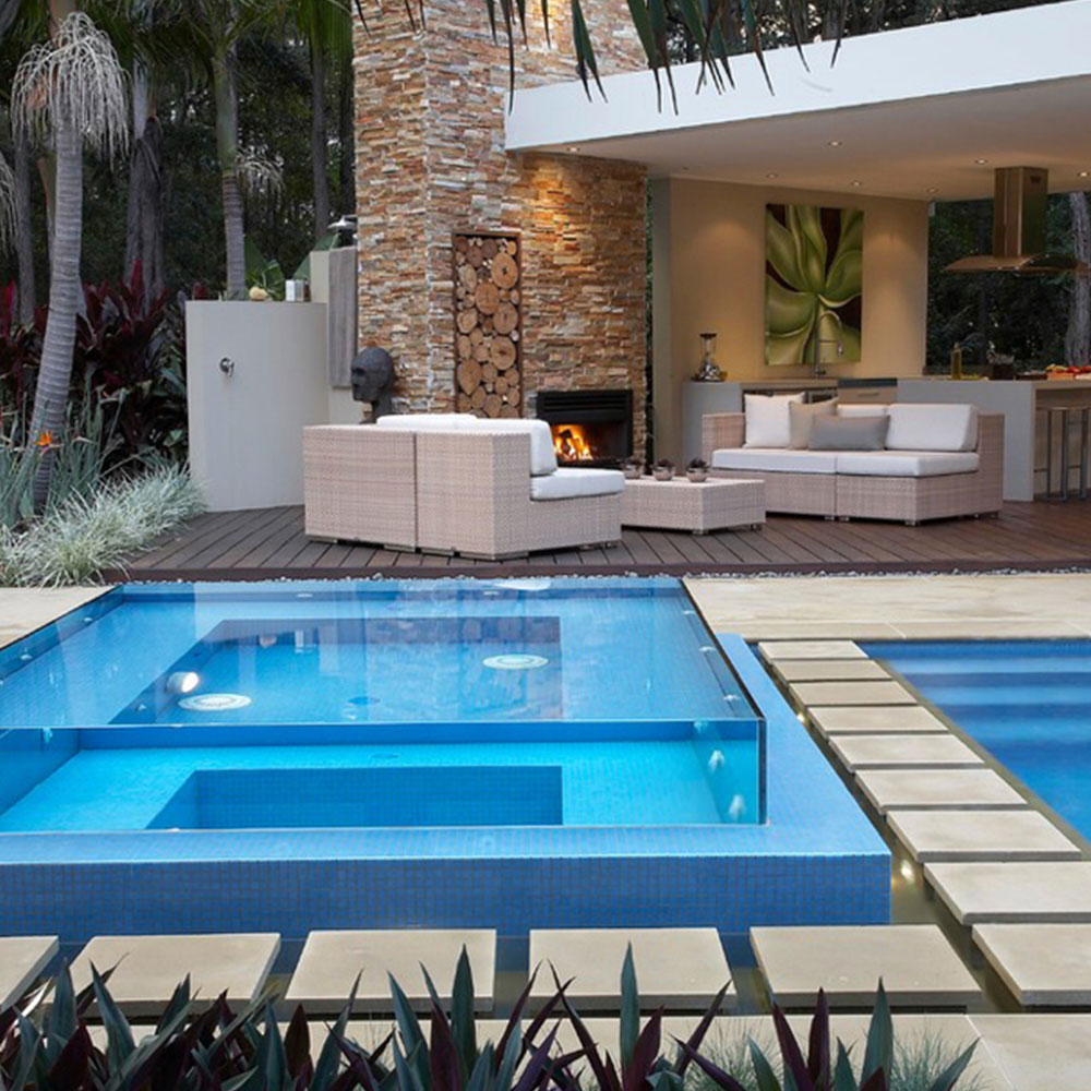 Others create the feeling of a resort, like lagoons or rock pools. Small homes enjoy plunge pools, while urban rooftops shine with glass walls.