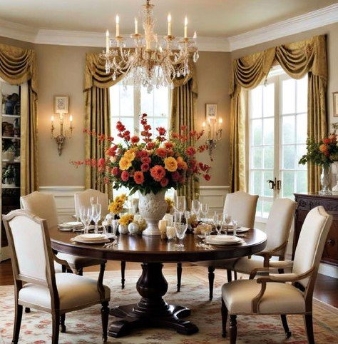 Floral arrangements breathe vitality and charm into a traditional dining room, bridging nature and refinement in perfect harmony. Whether you choose fresh blossoms or silk alternatives, their presence adds warmth, fragrance, and a graceful sense of celebration to every gathering. The right combination of flowers can transform a simple table into a visual centerpiece that feels both artful and welcoming.