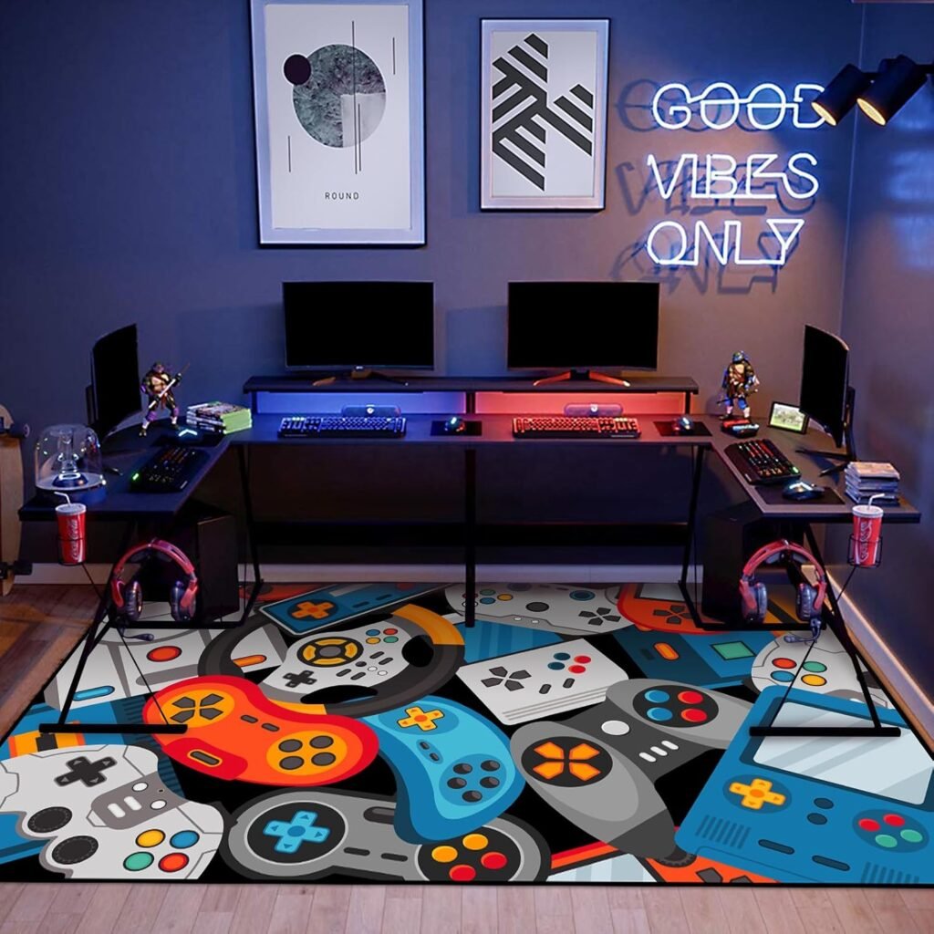 - Retro Arcade Game Themed Rug: Add a nostalgic touch to your setup with a retro-inspired arcade rug.