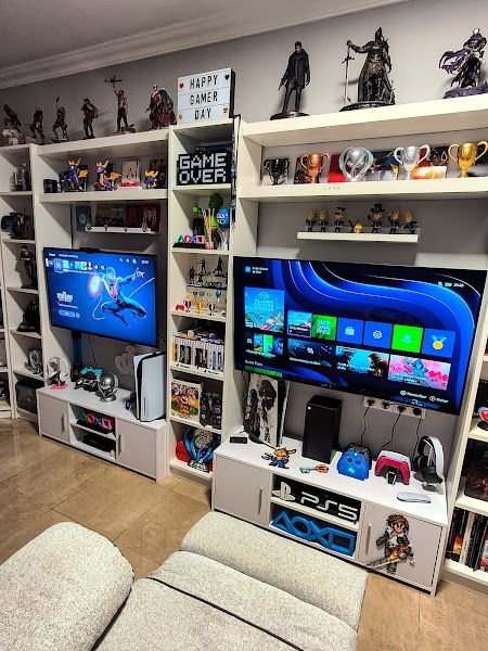 - Floating Wall Shelves: Maximize wall space to arrange gaming collectibles in a stylish and organized way.
