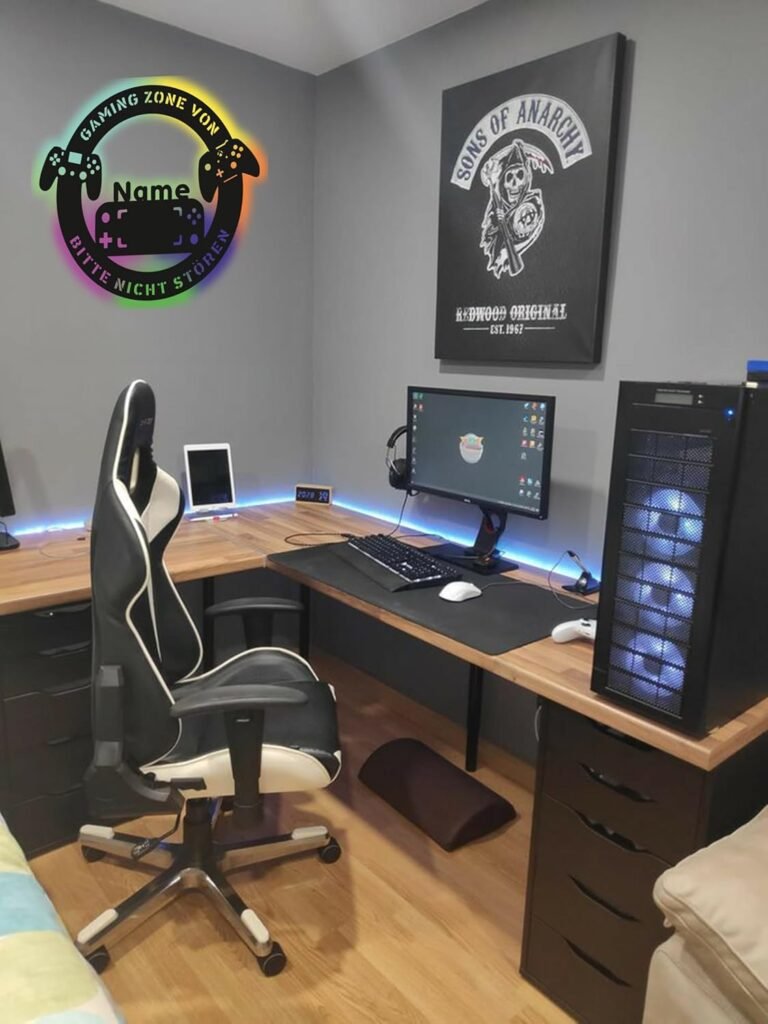 Bring personality to your setup with wall décor that mirrors your gaming passions. From bold posters to wall-mounted shelves, the right elements add style and depth while keeping your space organized. Posters create instant visual impact, while shelves give collectibles their own stage. Add LED strip lights to frame your display and introduce an immersive glow that turns an ordinary nook into a striking gaming zone.