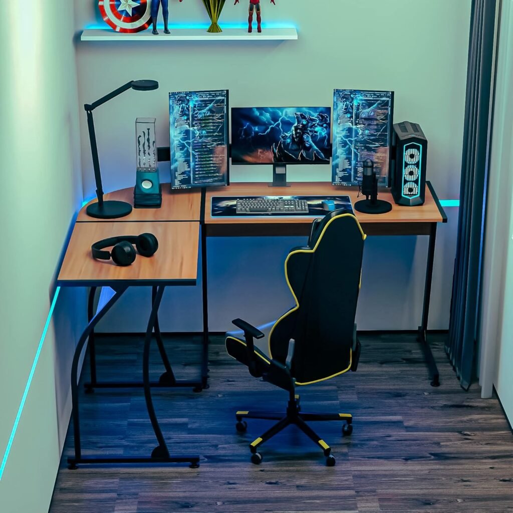 - Corner Computer Desk: Makes use of empty corners for gaming setups with multiple screens.