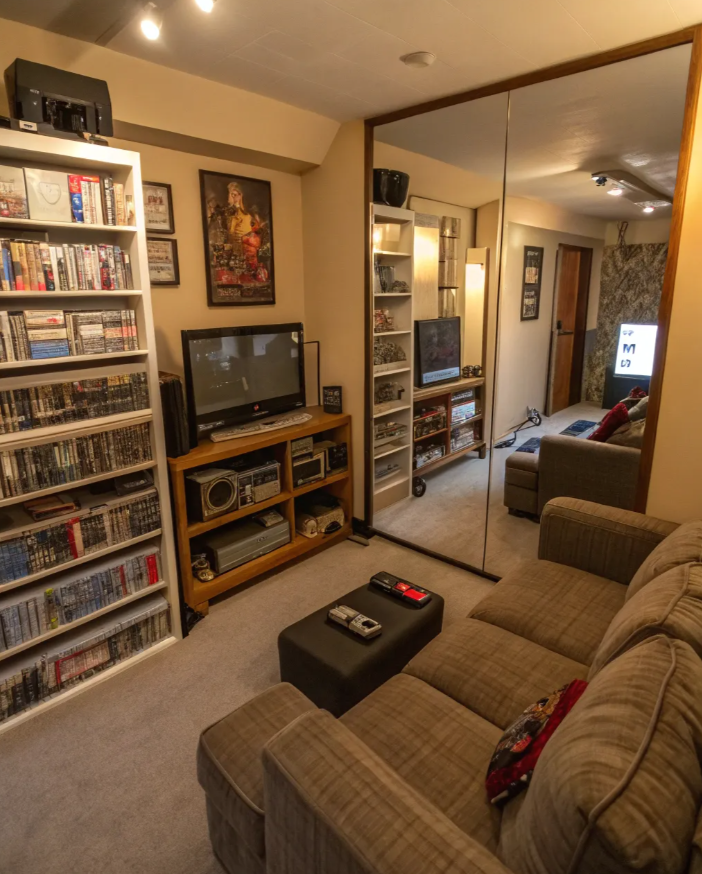 Well-placed mirrors can make a compact gaming room feel bigger and brighter. This simple trick opens up the space visually while adding character.
