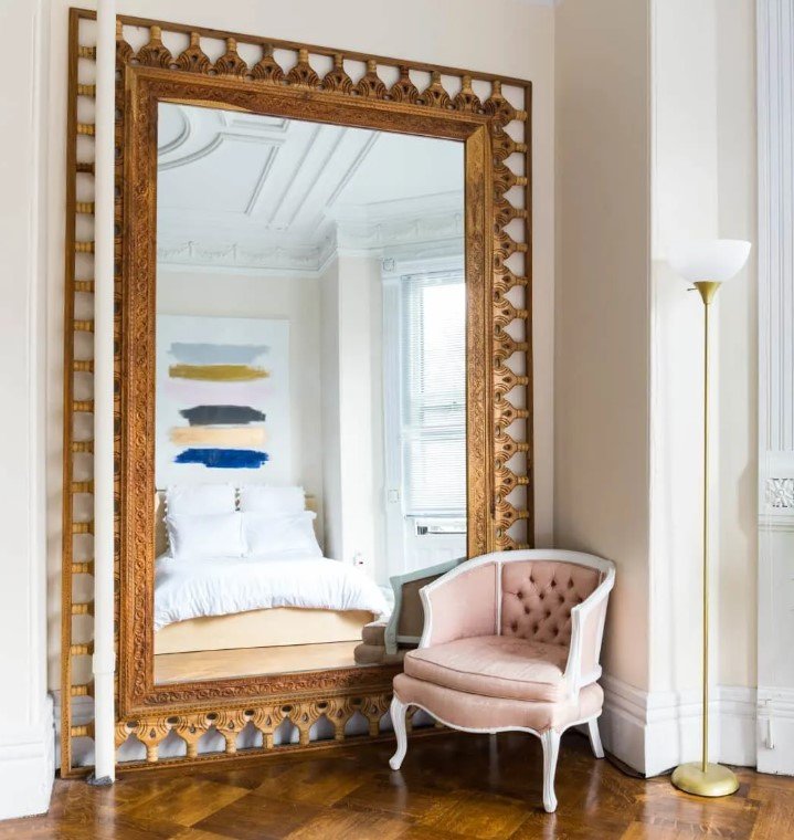 - Large Wall Mirror: Place a tall mirror against a wall to make the room feel double its size.